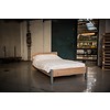 Twijfelaar met extra lang voeteneinde. Mooie zachte kleuren voor een natuurlijke uitstraling in jouw slaapkamer. De afmetingen van het bedframe zijn 216 (b) x 75/46 (h) x 130 cm (d); exclusief lattenbodem, matras en nachtkastje.